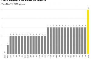 熬老头?赛季至今各队平均2.5个背靠背 勇士却有5个!